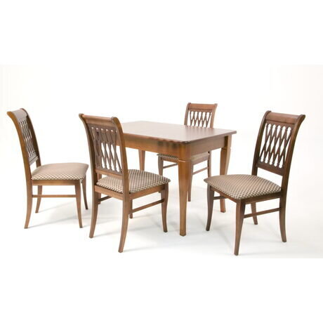 Комплект идеально подойдет для кухни или столовой зоны от 12 м². Классический дизайн в коричневых тонах органично смотрится как в традиционных интерьерах, так и в современных пространствах. Стулья с резными спинками и текстильной обивкой в клетку добавляют нотку элегантности, не перегружая пространство.Технические детали:
