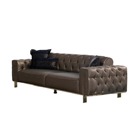 Современный диван Голд с металлическими опорами и отделкой подлокотников цвета золота.