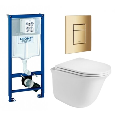Комплект 3 в 1 Grohe Rapid SL: подвесной унитаз с инсталляцией и кнопкой смыва цвета золото