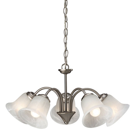 Назначение светильника: для гостинной, Материал: стекло, металл, Количество ламп: 5 шт, Тип лампы: накаливания, Мощность: 60 Вт, Патрон: Е14, Цвет арматуры: никель