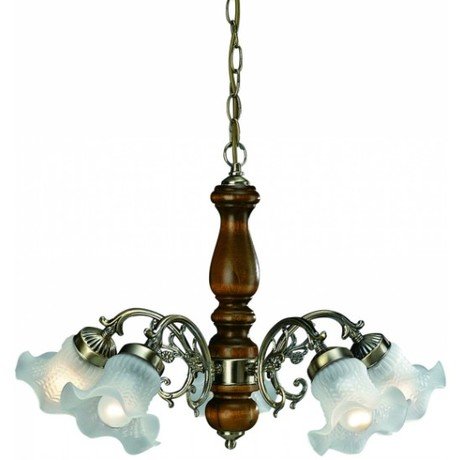 Назначение светильника: для гостинной, Материал: стекло, металл, Количество ламп: 5 шт, Тип лампы: накаливания, Мощность: 40 Вт, Патрон: Е14, Цвет арматуры: античная бронза