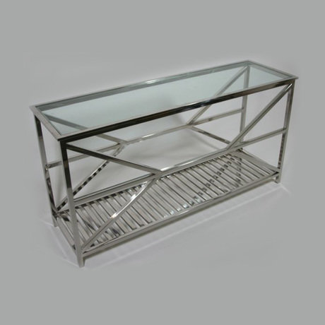 Журнальный столик / консоль Carlton выполнен из никелированного металла. Столешница из прозрачного стекла.